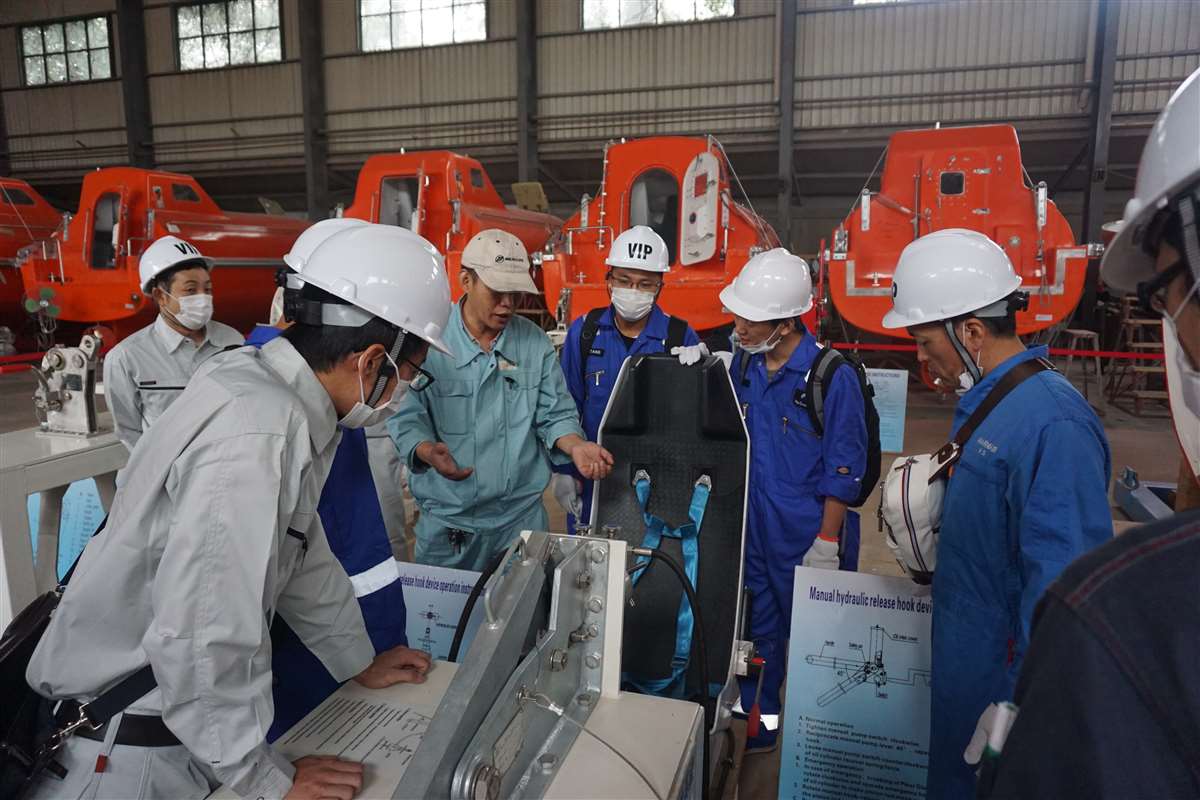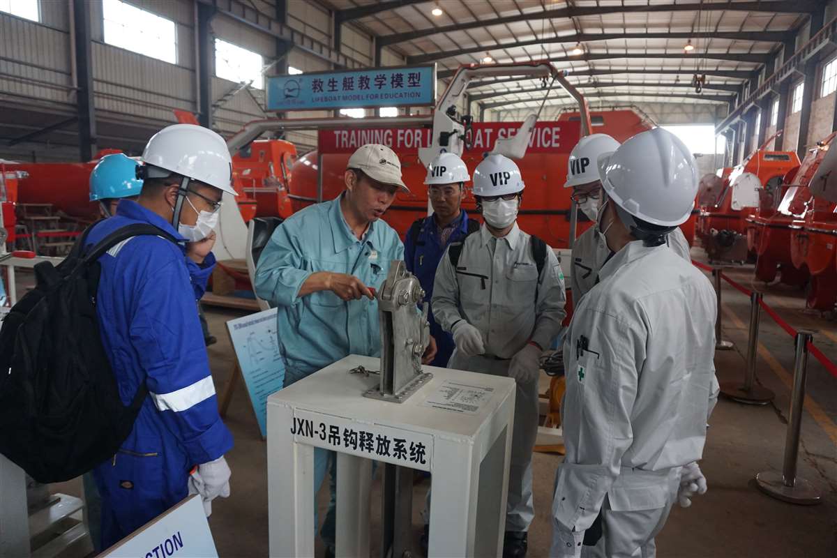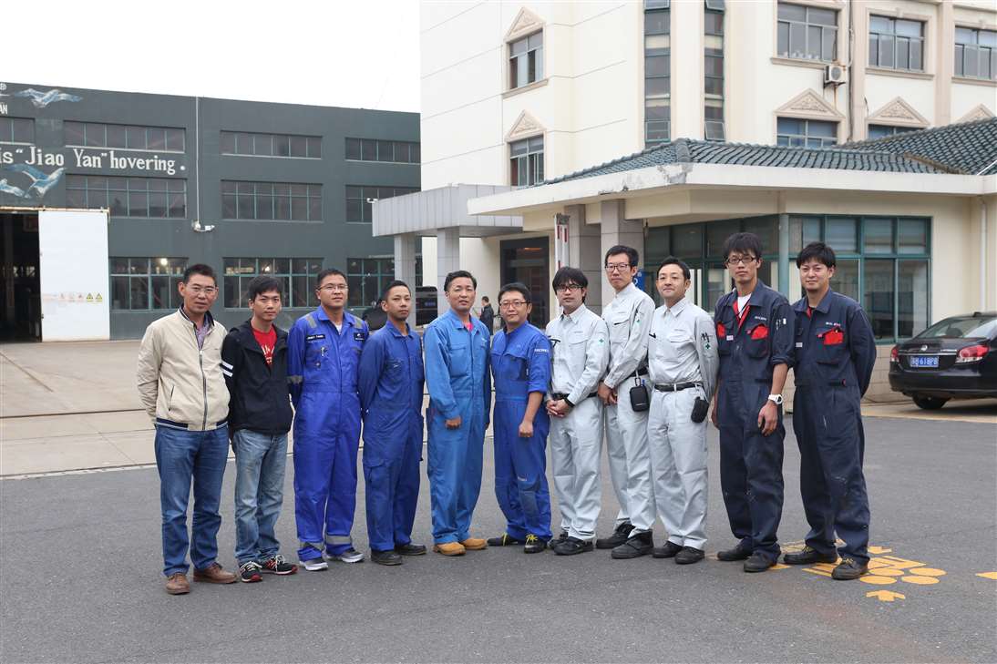 来自MANSEI INC/MARINAIR LIFERAFT CO., LTD/NISHI-NIPPON FUJIKURA CO., LTD/MOL ENGINEERING CO., LTD /SHIPGUARD INC共11名船舶服务精英人员来到mksports在线登录_mk(中国)一站式服务体育,对厂家设备的新设计,新产品进行深层次的学习和服务训练,成为佼燕救生设备的优秀服务商,为佼燕的客户提供更优质,更专业,更及时的服务.